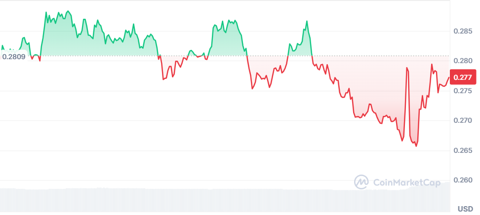 However, despite the ongoing attention surrounding the Moo Deng exhibit, the price of the MOODENG token has yet to see significant change, trading at $0.277. This represents a 4.75% decline from the previous day. Its market cap stands at $274.75 million, and trading volume has experienced a notable increase of 23.65% in the past 24 hours, reaching $98.44 million.