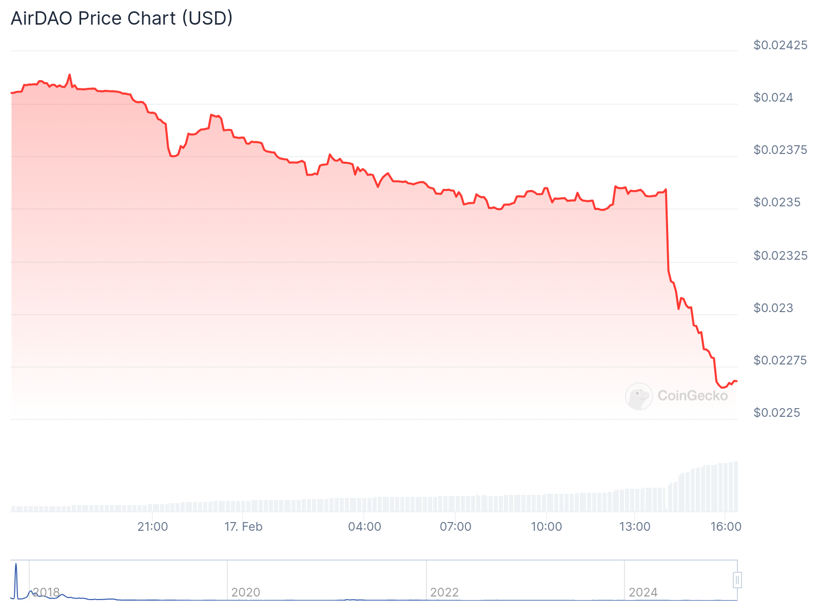 Similarly, AirDao also experienced a sharp drop after the delisting notice. The token has fallen by 37% to $0.0025 in the past 24 hours. In the past month, AMB has gone down by more than 60%.