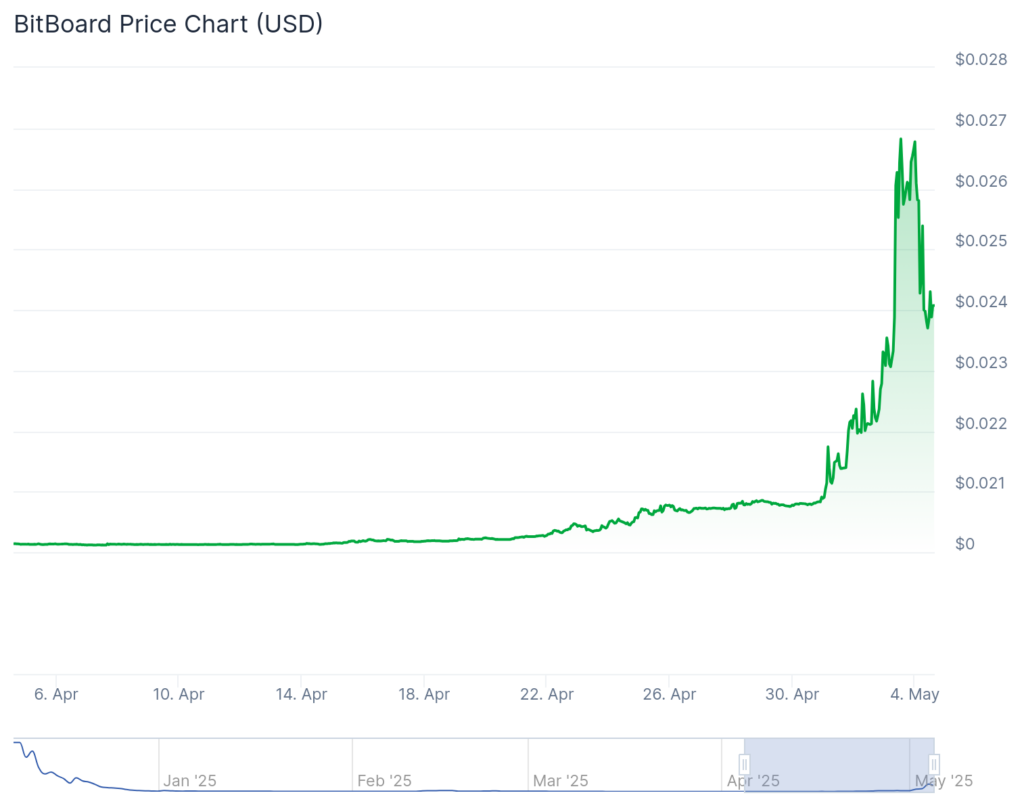 BitBoard describes itself as “a space for stars and fans that offers an online fandom service.” However, despite the price action, there haven’t been any notable announcements or developments from the project that would explain such price movements. The surge appears to be driven more by market speculation than fundamental developments.