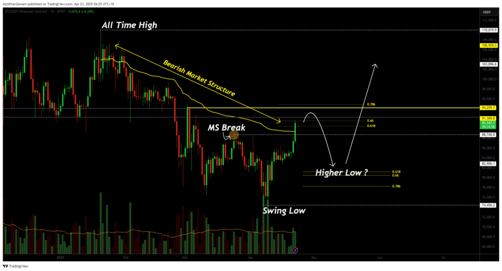 The $81,850 level holds technical relevance as it aligns with the recent breakout zone and offers a natural area for a higher low to form. If respected, it would validate a clean market structure shift and fuel momentum for a stronger push upward.
