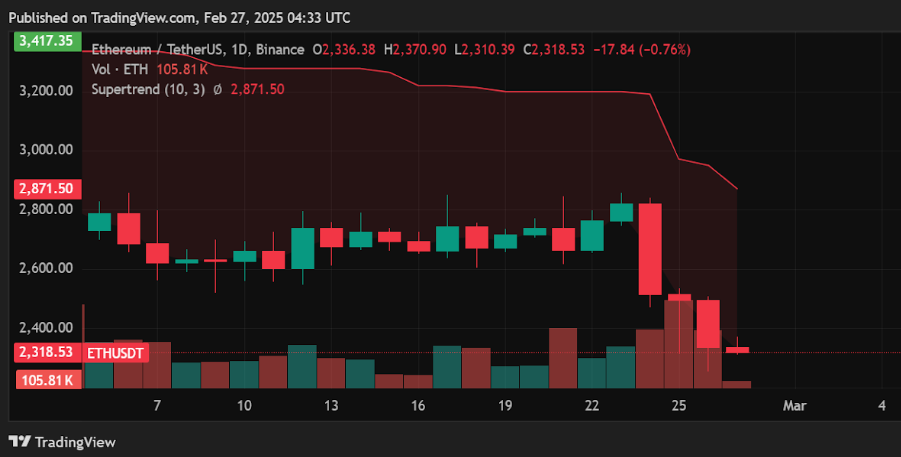 ETH’s 24-hour trading volume spiked to $2.7 billion as Ethereum price dipped below $2,300, a level unseen since January. Analysts attribute this to profit-taking and macroeconomic jitters — U.S. inflation data agonies and the SEC’s Crypto Task Force delays clarity on crypto classifications. ETH’s RSI, in general, has always signaled oversold conditions.