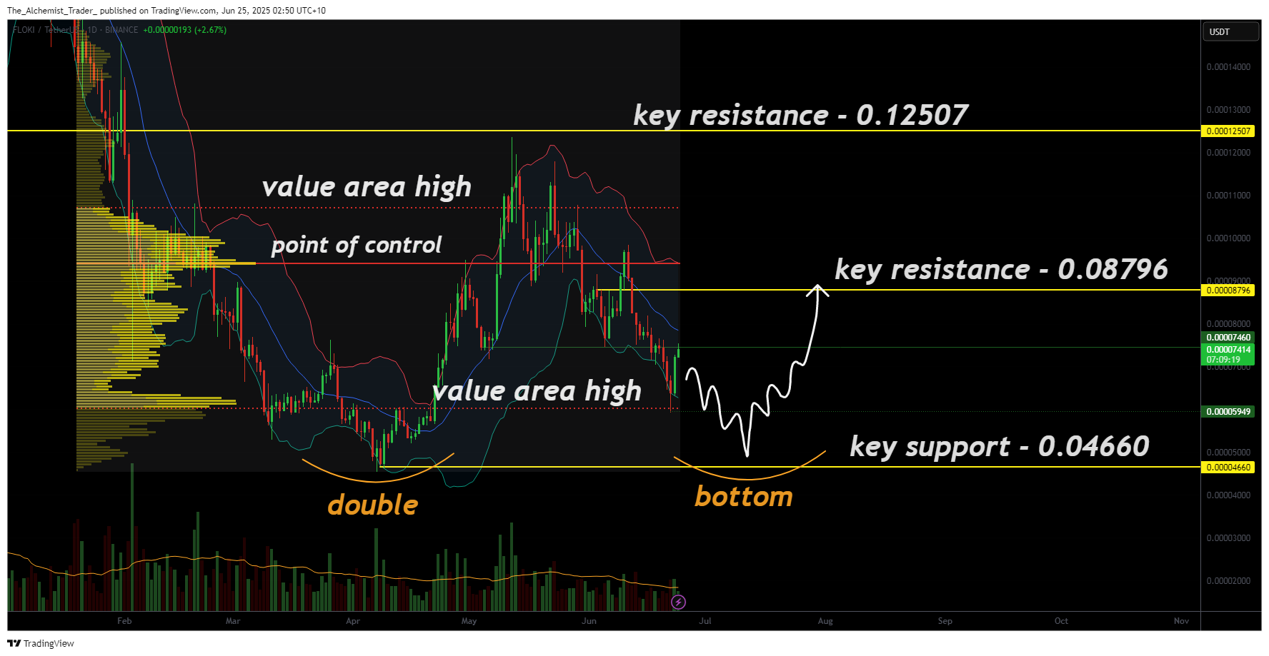 Floki is nearing a make-or-break support level. If a double bottom forms and the value area high is reclaimed on volume, a new rally could begin. Otherwise, further downside remains in play. The developing structure is worth watching, as it may signal the early stages of a macro reversal, but only if bulls step in decisively.