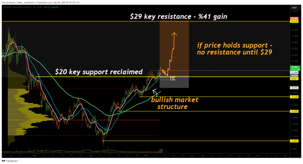 HyperLiquid has flipped a major resistance level into support at $20, signaling strong bullish momentum. If this level holds, a 41% move toward $29 could be on the horizon.