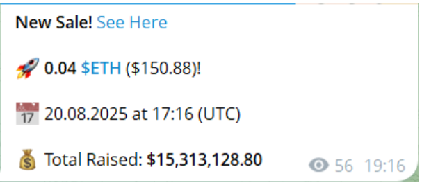 So far, the results speak for themselves: more than $15 million raised toward a $30 million target. To boost transparency, a live Telegram feed logs each new contribution, letting the community watch the presale progress in real time.