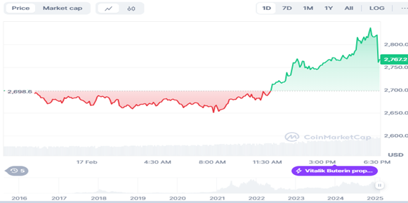 The Ethereum price has also recorded a weekly rally of over 4% to trade above the $2,700 region. The 50-day SMA is also above the 200-day SMA, strengthening the possibility of bullish momentum as the short-term average is above the long-term average. Crypto Rover’s recent tweet also points to a pumping Ethereum price.