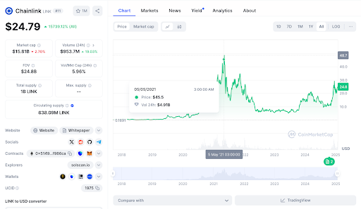 The Chainlink chart reveals a history of volatility in recent years. Despite occasional recoveries, the asset has failed to maintain higher levels, indicating weak long-term momentum. LINK’s recent growth appears more like short-term speculation rather than a foundation for future gains. The chart lacks clear signals of stability or the potential for significant growth.