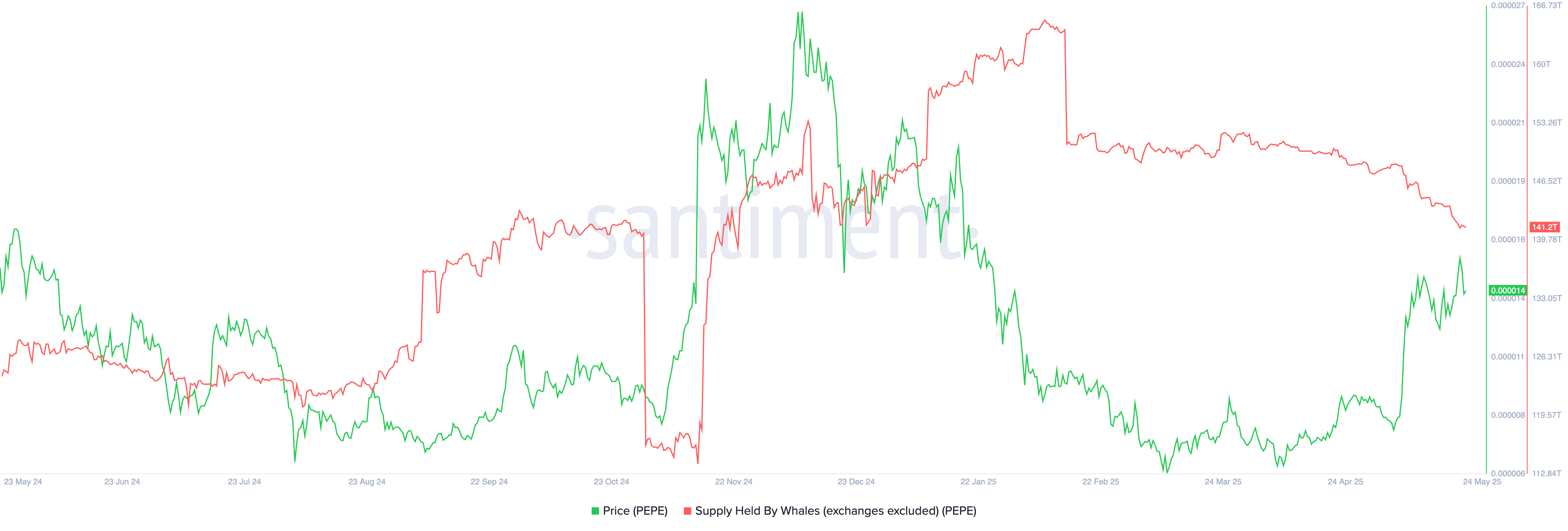 Pepe has also retreated as on-chain data shows that the supply held by whales continued falling this week. Santiment data shows that whales hold about 141.2 trillion coins valued at $1.4 billion, down from 165 trillion in February. Their current holdings is the smallest it has been since November last year.