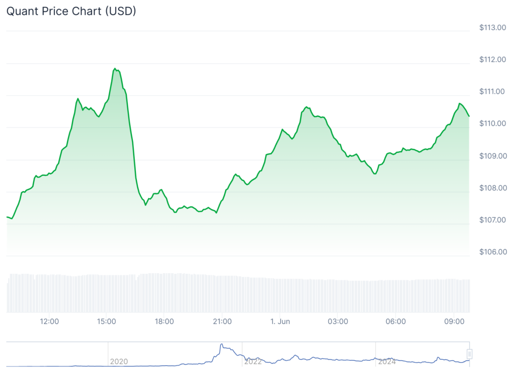 Quant (QNT) price jumped to a high of $119.67 in May, up 101% from its lowest point in April. This surge brought its market cap to over $1.2 billion.