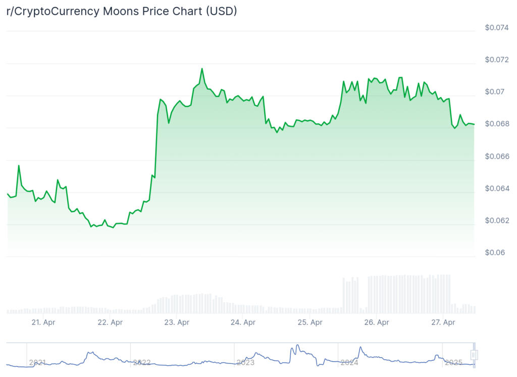 Unlike traditional “karma” on Reddit, Points are decentralized — meaning users actually own them and can store them in crypto wallets, tip others, unlock special memberships, and even trade them. Communities like r/CryptoCurrency (with its “Moons” token) have led to adoption. See the seven-day trend below.