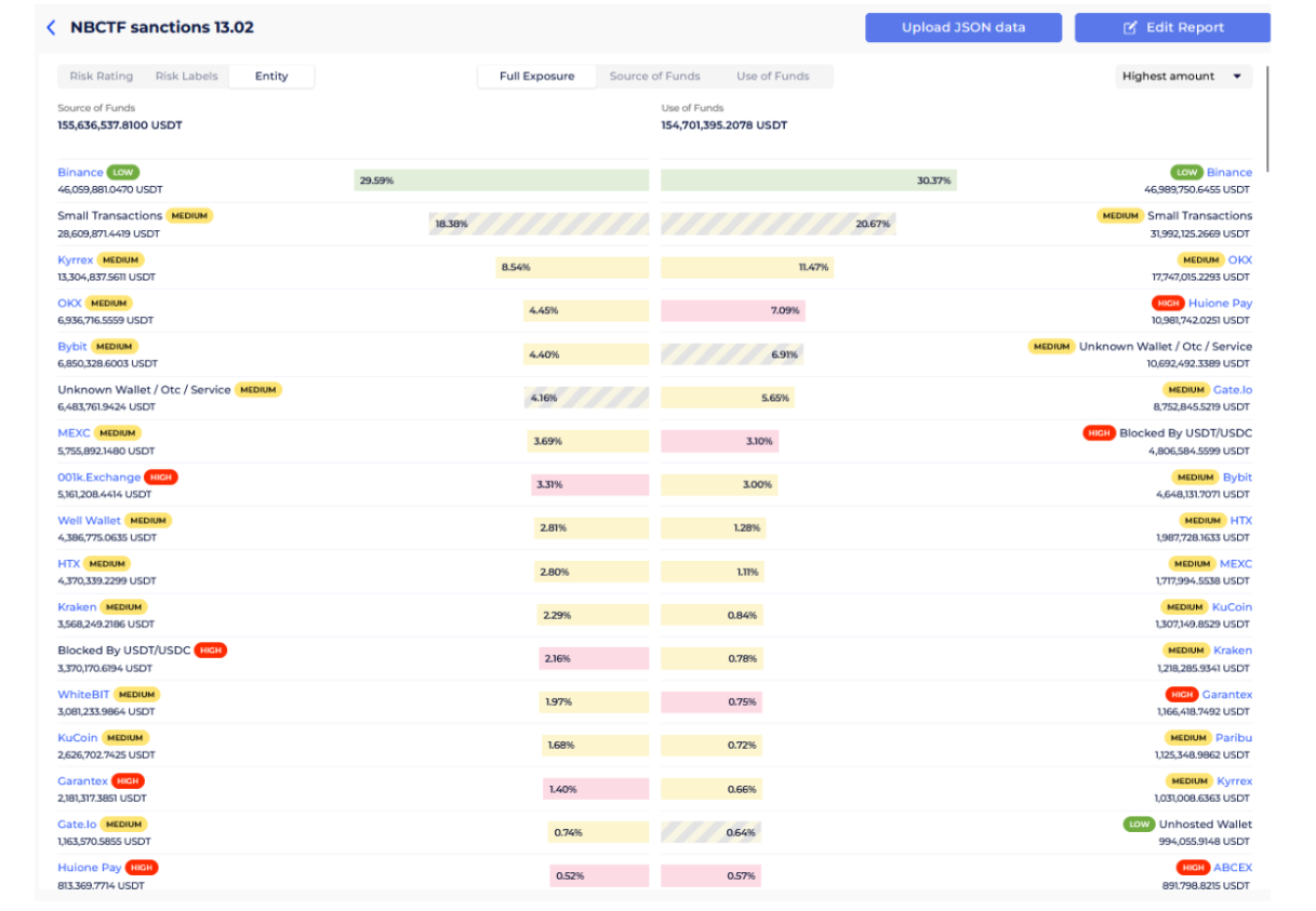 According to Global Ledger, the entity processed over 155 million USDT before the NBCTF sanctions took effect.