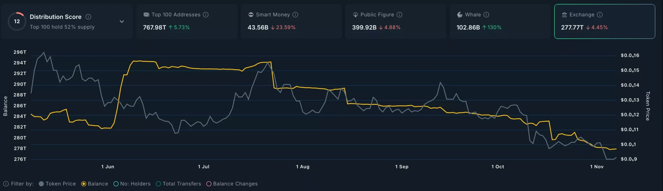 On the positive side, the number of Shiba Inu tokens on exchanges has dropped to 277 trillion, down from 295 trillion in October last year.