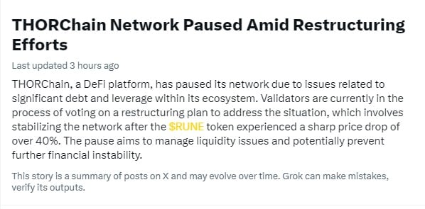 THORChain in massive $200m debt; pauses network for restructuring votes