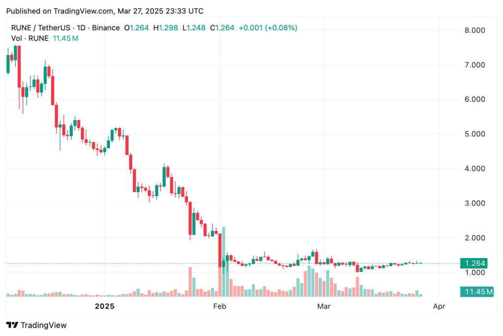 As of today, March 28, THORChain (RUNE) is trading at $1.26, having gained about 1.3% in the last 24 hours. However, over the past year, the coin has experienced a sharp decline, falling by nearly 86%.