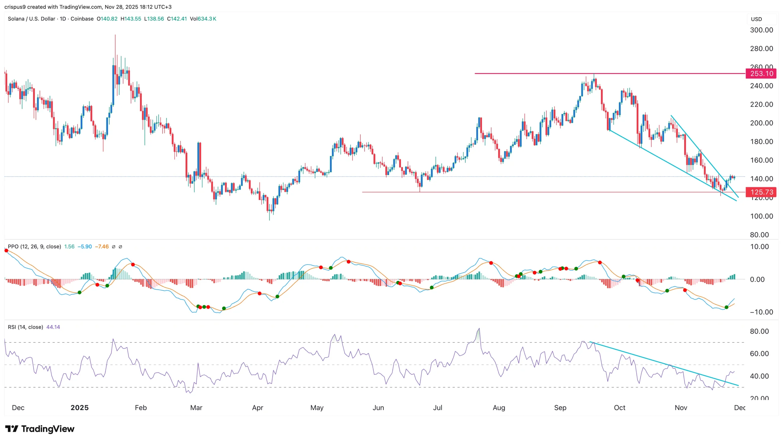 Solana (SOL) token rose to $145 today, Nov. 28, up by 18% from its lowest point this month. Here are some of the top reasons why SOL token may be on the cusp of a roughly 80% surge.