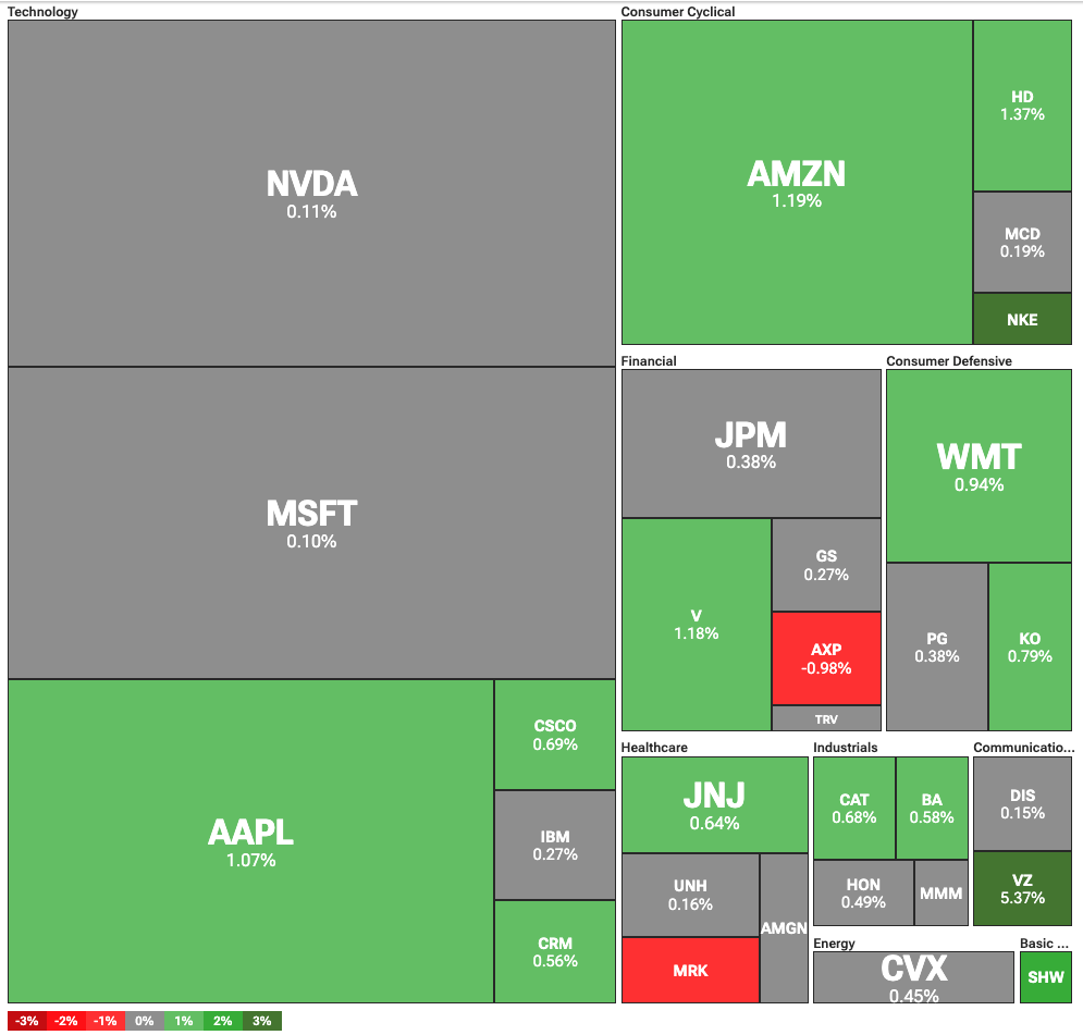 The Dow rose 220 points (0.52%), while the S&P 500 and Nasdaq gained 0.58% and 0.75%, respectively.