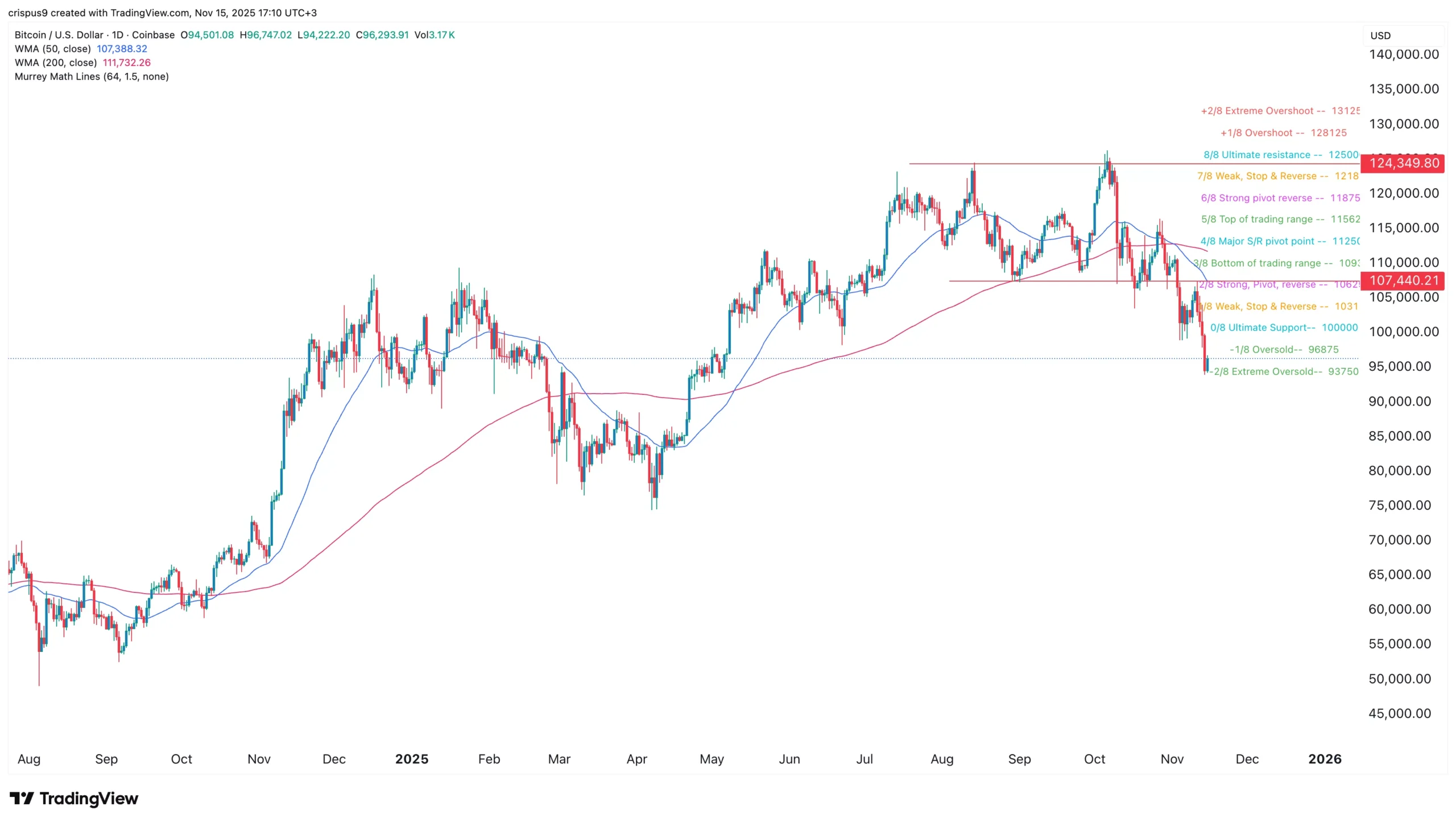 The coin has remained below the Supertrend indicator and moved to the extreme oversold point of the Wyckoff Theory. Therefore, there is a possibility that it will continue falling, with the next key point to watch being at $90,000. Such a move will fuel more weakness in the crypto market.